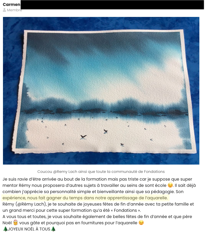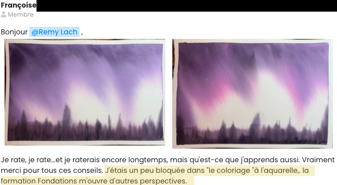 Vous verrez que Fondations ne se résume pas à une série de vidéo. La communauté de l’aquarelle est un espace de bienveillance, de partages et d’échanges.
